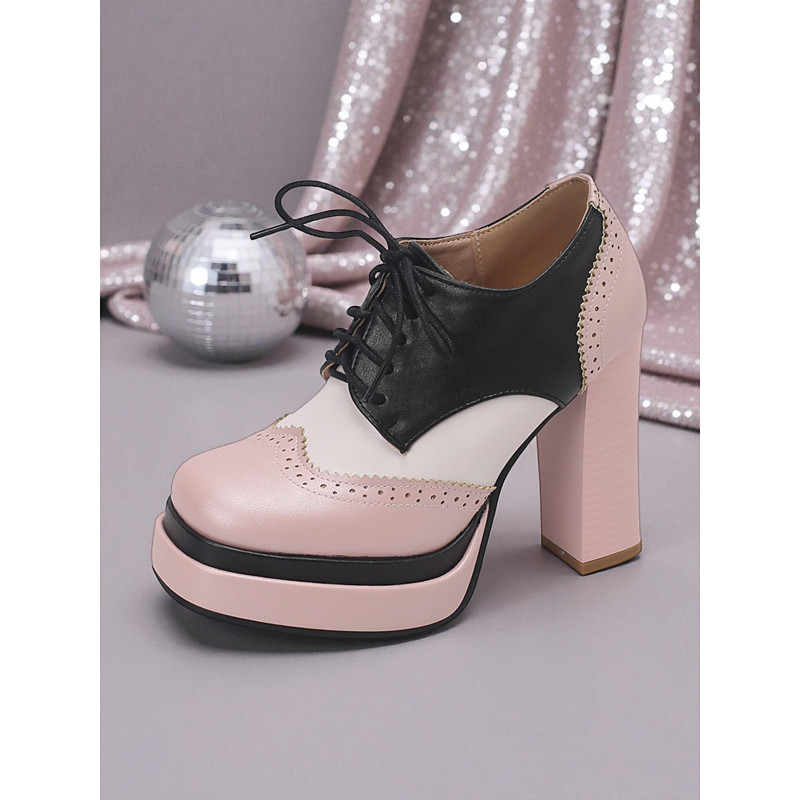 Women's Red and Black Colorblock Platform Heels with Lace-Up Detail - Perfect for 1980s-Disco Themed Parties, Night Out and Special Events