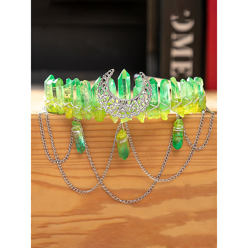 Women's Boho Crystal Crown Headpiece - Mystical Quartz Moon Headband in Multiple Colors - Perfect for Carnival Masquerade Costumes