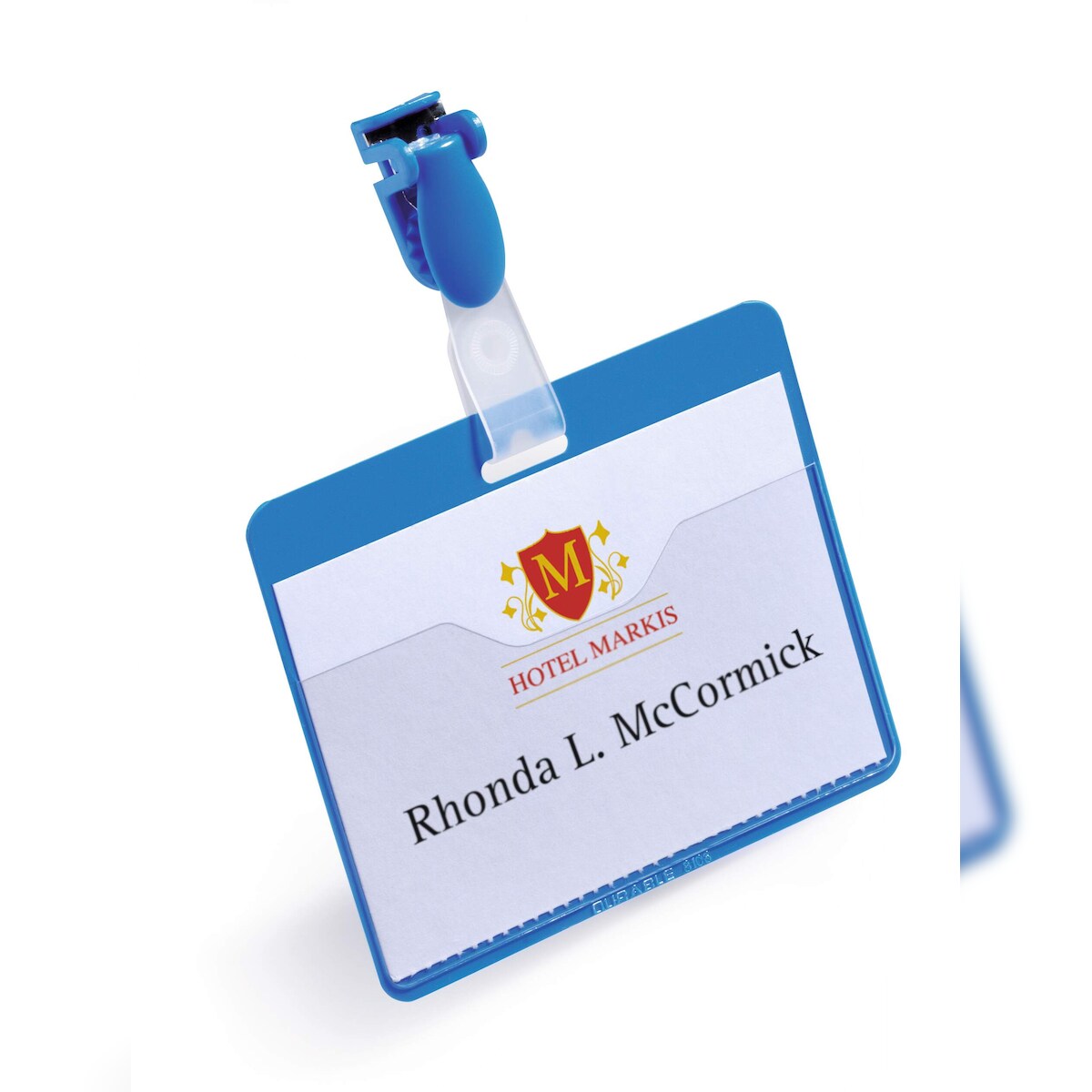Durable Namensschild 60x90mm bl 25St Querformat mit Clip vorn offen