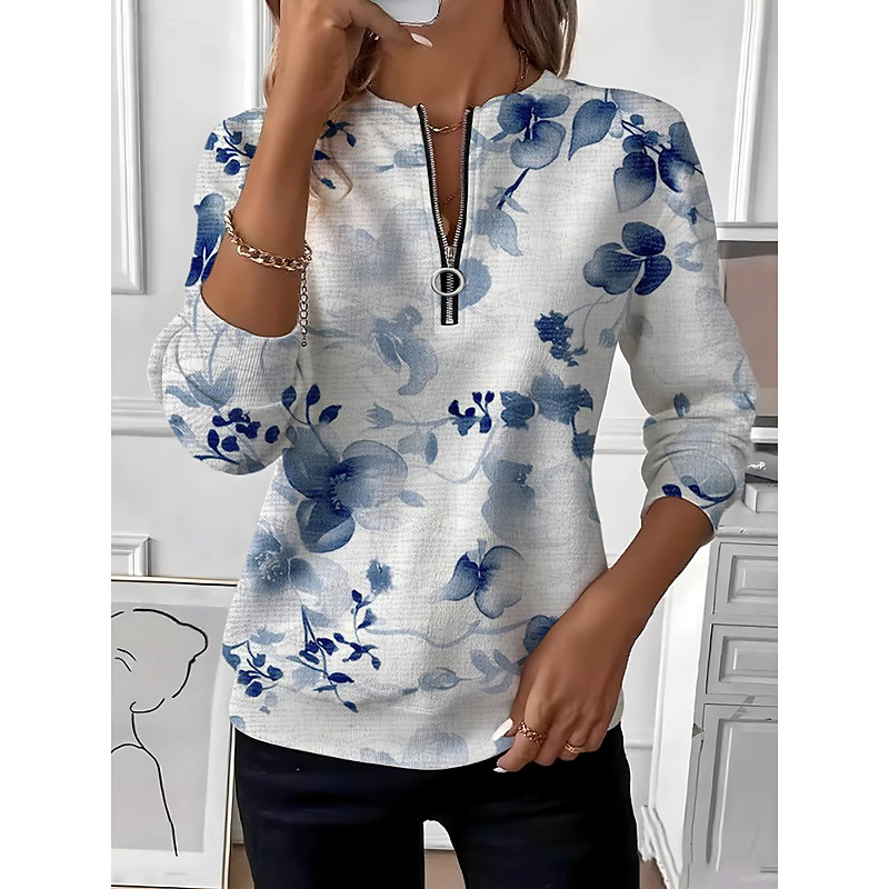 Women's Pullover Sweatshirt Floral Graphic Fashion Casual Long Sleeve Round Neck Regular Tops Street Dailywear Zipper Print Blue Purple Fall Winter