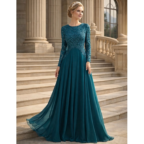 Linea ad A Lunghezza al pavimento Abito da invitata a nozze Abito Formale Abito da sera Abito da cerimonia per signora Manica Lunga Girocollo Elegante Festa Formale Ospite di nozze Serata Formale