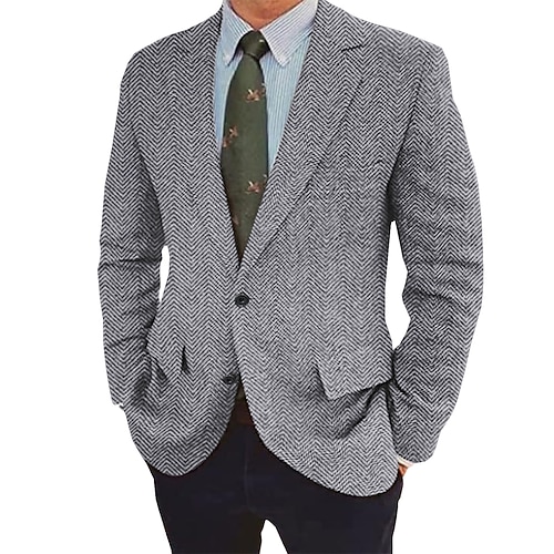 Herren Tweed Fischgrät Blazer Retro Vintage Jacke Winter Regular Übergröße Einreihig Zwei Knöpfe Braun Schwarz Blau
