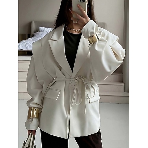 Damen Blazer Bequem Atmungsaktiv Tasche Elegant Lässig Einfach Urlaub Straße Lässig Alltagskleidung Einreihig Lang Umlegekragen Lässiger Schnitt Langarm Oberbekleidung Weiß Gelb Rosa Frühling Herbst
