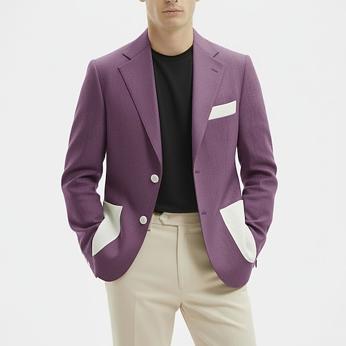 Herren Blazer Geschäft Cocktailparty Hochzeitsfeier Mode Lässig Frühling Herbst Polyester Einfarbig Tasche Knöpfe Bequem Einreihig Blazer Hellrosa Gelb Rosa Königliches Blau