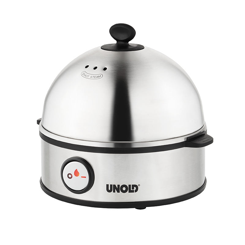 Unold 38626 EIERKOCHER Edel, 360W, Griff für 1 bis 7 Eier, Kochschale, Edelstahl/Schwarz