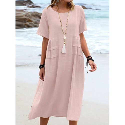 Per donna Abito Midi Abito a trapezio Abito Estivo Casual Quotidiano Vestibilità comoda Semplice Manica Corta Girocollo Blu Giallo Rosa Arancione Estate