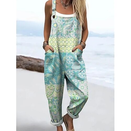 Per donna Tuta Attivo Grafico Senza Maniche Senza maniche Harem Collo quadrato Tasca Stampato Quotidiano Spiaggia Vestibilità comoda Blu Blu turchese Verde Estate