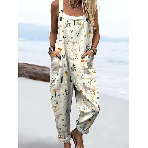 Per donna Tuta Attivo Floreale Senza Maniche Senza maniche Harem Collo quadrato Tasca Stampato Quotidiano Spiaggia Vestibilità comoda Blu Rosa Beige Estate