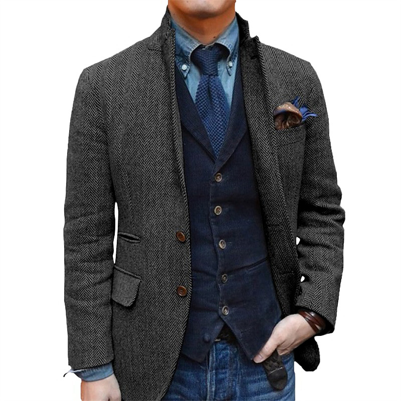 Men's Retro Vintage Tweed Blazer Herringbone Wool Blazer Sport Coat Regular Plus Size Single Breasted Two-buttons Black Champagne Burgundy Blue