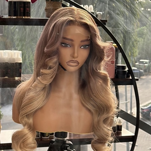 Cappelli veri 13x6 Pizzo Frontale 13x4 Pizzo Frontale Parrucca Parte libera Brasiliano Ondulato naturale Liscio Marrone chiaro Parrucca 130% 150% 180% Densità dei capelli con i capelli del bambino