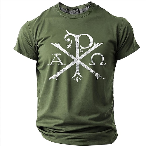 Herren Bibel Chi Rho Alpha Symbol Christogramm Christliche Bibel Religiös Vintage Abgerissenes T-Shirt Grafik Lässig Kurzarm Kirche Kleidung Designer Kleidung Apparel
