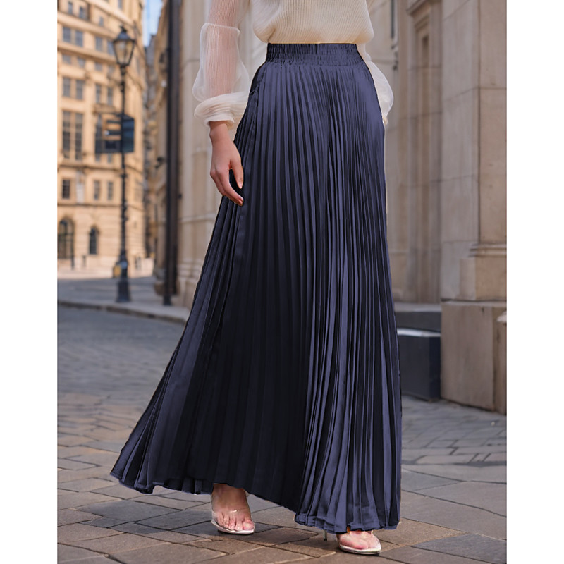 Women's Skirt Long Skirt Fashion Long Maxi High Waist Skirts Solid Colored Ruched Pleated Shimmery Micro-elastic Daily Holiday Silver Peacock Blue Navy Black Spring, Fall, Winter, Summer Polyester