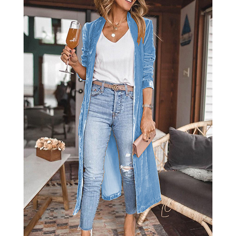 Women's Coat Velvet Blazer Comfortable Open Front Casual Plain Vacation Daily Wear Weekend Long V Neck Loose Fit Long Sleeve Outerwear Black Yellow Red Fall Winter