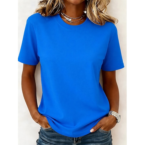 T-Shirt da Donna in 100% Cotone Shirt Tee Top Monocromatica Moda Stilosa Basic Manica Corta Collo Regolare Top Regolari Uscita Giornaliera Weekend Blu Nero Bianco Giallo Verde Chiaro Estate Primavera