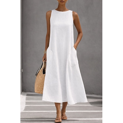 Per donna Abito Midi Vestito Estivo Abito Bianco Abito da laurea Elegante Moda Classico Vacanza Vestibilità comoda Semplice Senza Maniche Girocollo Nero Bianco Giallo Grigio Estate Primavera