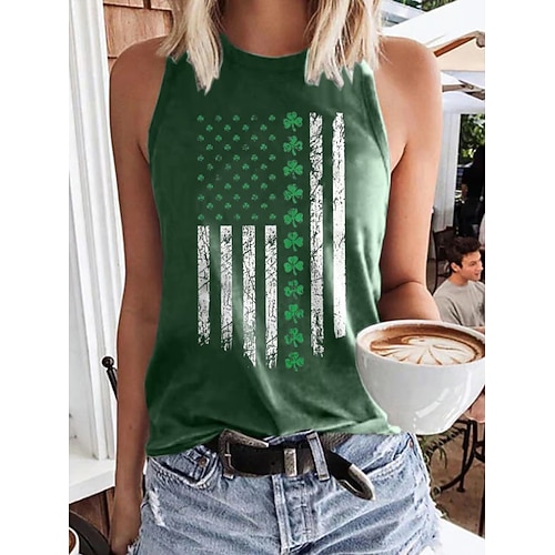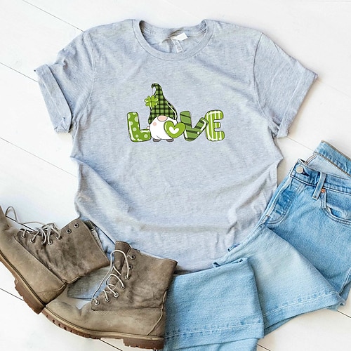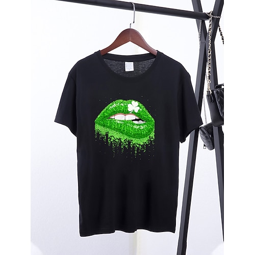 Giorno di San Patrizio Festa di San Patrizio Per donna Maglietta Trifoglio Moda Manica Corta Girocollo Top Regolari Casuale Giorno di San Patrizio Stampato Nero Bianco Rosa Arancione Verde Primavera