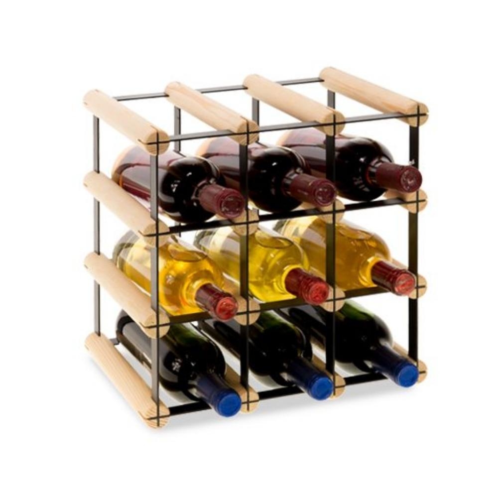 PROREGAL Modulares Weinregal VINOTECA MOD METAL | HxBxT 32,5x32,5x24,5cm | 3x3 Flaschen | Massives Kiefernholz | Natur | Flaschenregal