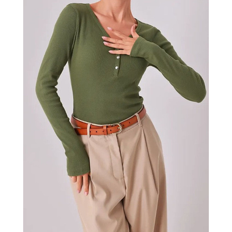 Women's Blouse Dressy Tops Solid Color Plain Elegant Ladies Stylish Long Sleeve V Neck Regular Tops Daily Work Going out Ruched Patchwork Buttons Black White Wine Green Fall Winter