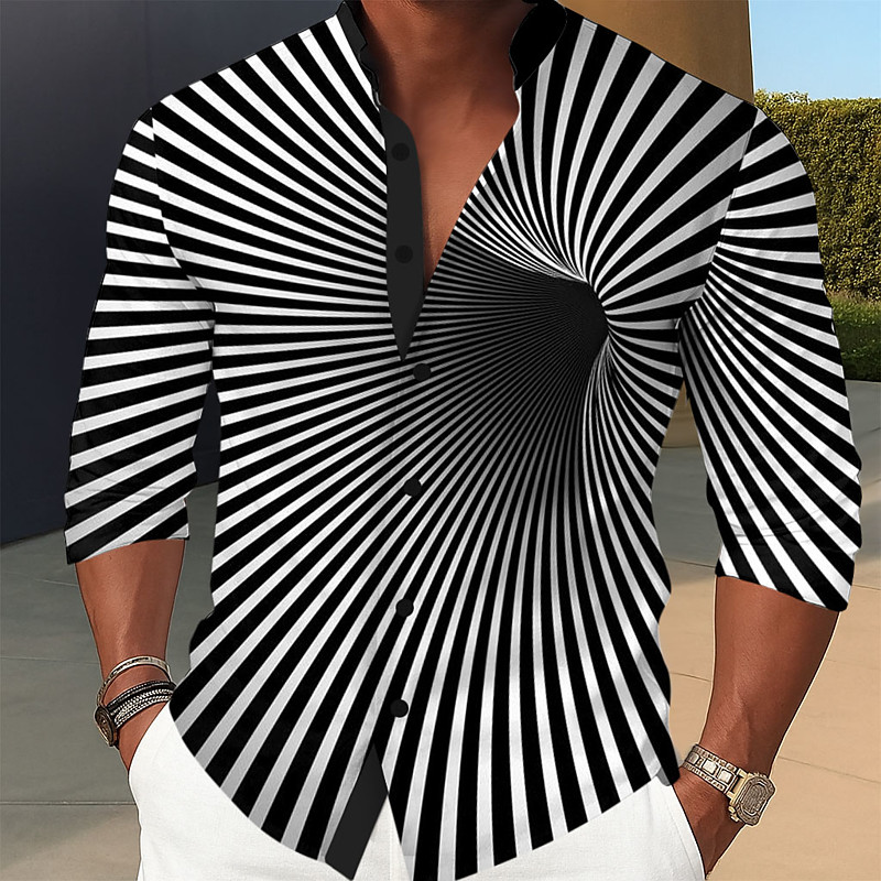Men's Optical Illusion Hole Shirt Stand Collar Shirt Long Sleeve Fashion Casual Dailywear Holiday Spring Fall Mandarin Collar Band Collar 3D Print Button Up Shirts Black Blue Orange Green