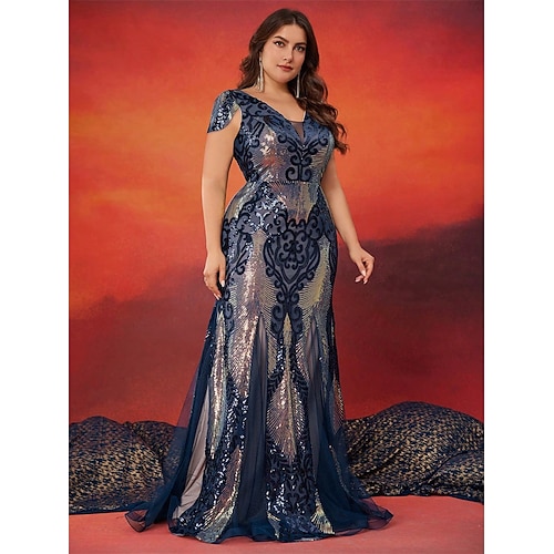 Abiti Quinceanera Sirena Tromba Abito Elegante Abito Formale fino al Pavimento Maniche Corte V Neck con Strass