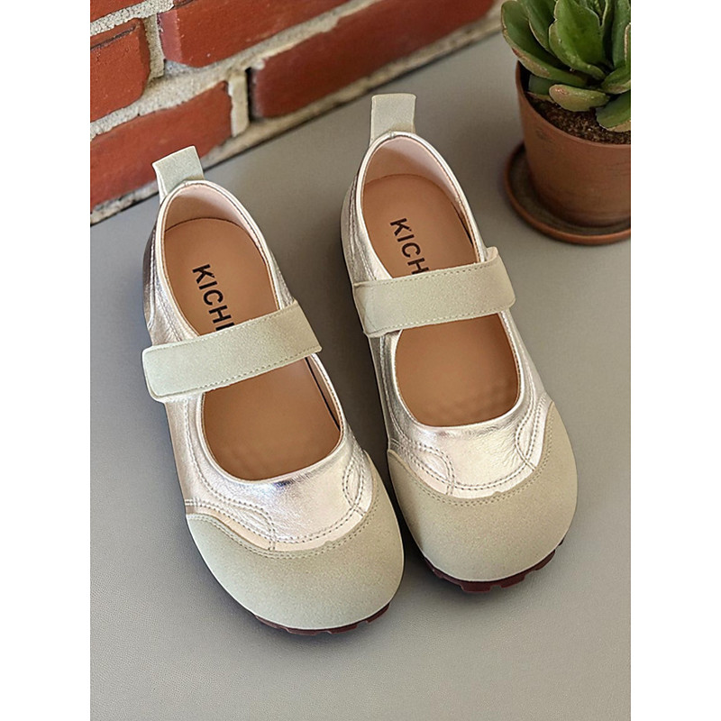 Women's Beige Wide Fit Mary Jane Flats with Hook and Loop Strap – Casual Comfortable Slip Resistant Barefoot Shoes for Daily Wear, Walking and Travel