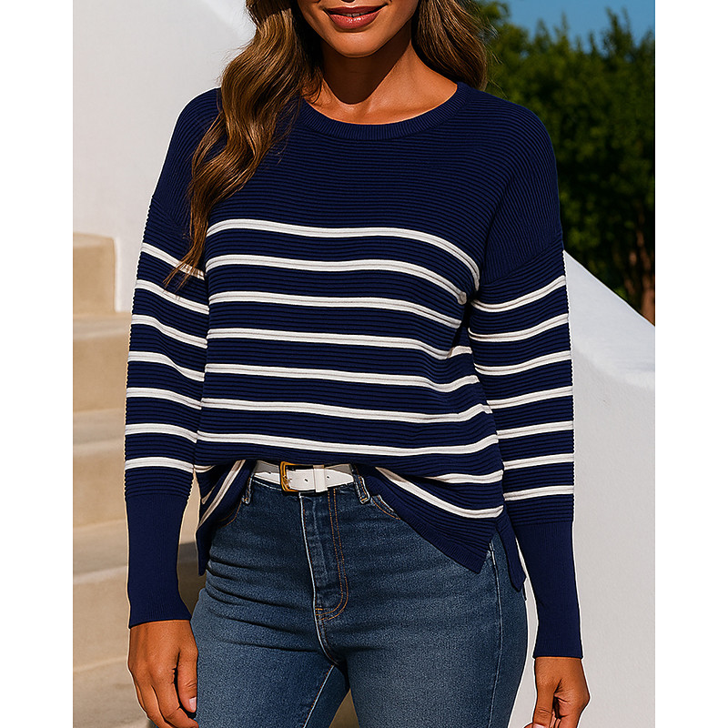 Women's Knit Shirt Pullover Sweater Long Sleeve Top Athleisure Fall Striped Spandex Fashion Outdoor Travel Sports Sportswear Activewear Black-White Black White