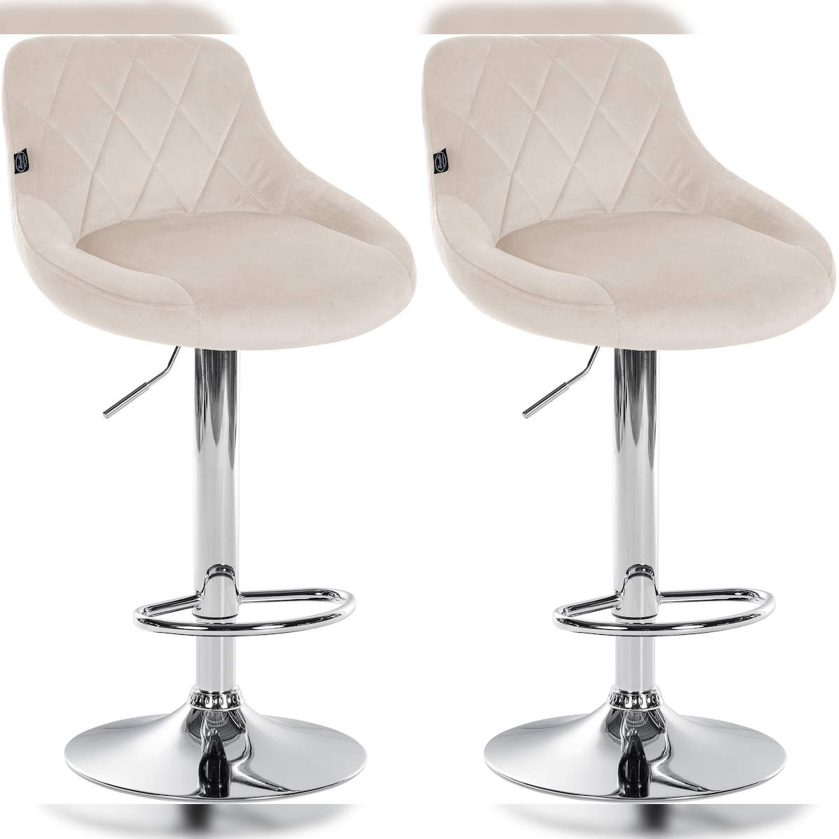DELUKE 2er Set Barhocker FALON - Samt Creme 46x49x83 cm Silber | Barstuhl Mit Lehne Drehbar Tresenhocker Tresenstuhl Kneipenhocker Kneipenstuhl