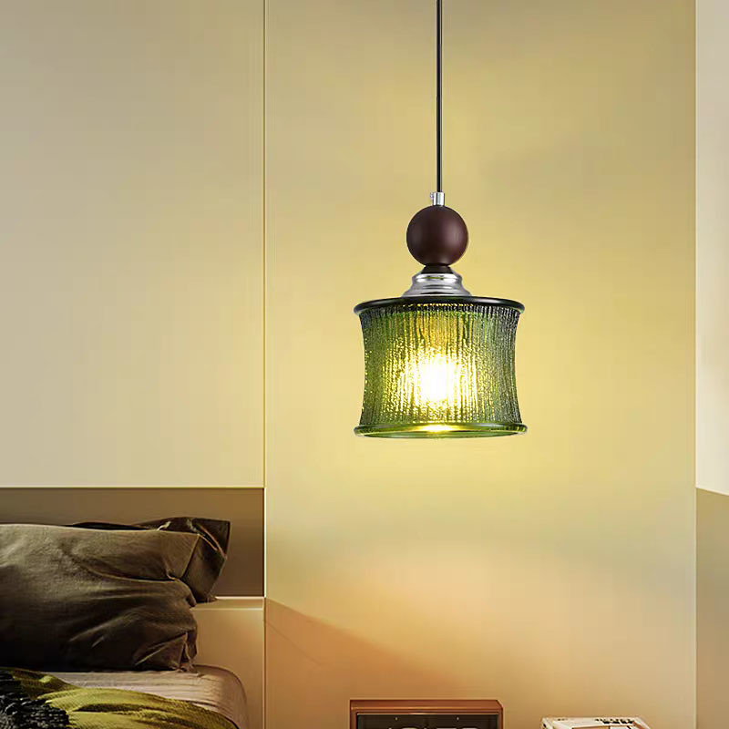 Pendant Lamp Japanese Vintage Walnut Bedroom Pendant Light Modern Minimalist Green Glass Dining Room Hanging Lamp Mid Century Nordic Kitchen Island Chandelier For Bedside Bar Counter Living Room