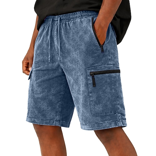 Herren Shorts Freizeitshorts Acid Wash Shorts Kordelzug Elastischer Bund Mehrere Taschen Einheitliche Farbe Komfort Atmungsaktiv Kurz Täglich Streetwear Urlaub Mode Lässig Blau Schwarz Unelastisch