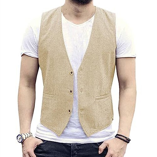 Per uomo Gilet Gilet di lino Vacanza Feste Affari Moda Casual Primavera Autunno Tasca Bottoni Misto Lino-Cotone Confortevole Semplice Monopetto Un Bottone Scollo a V Vestibilità regolare Nero Bianco