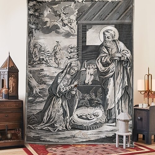 Natale appeso arazzo presepe stile stampa nascita di Gesù grande arte murale decorazione coperta tenda festa casa camera da letto soggiorno celebrazione religiosa decorazione
