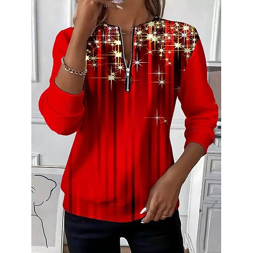 Per donna Felpa Pullover Felpe con cerniera Grafico Fiocco di neve Moda Casual Manica Lunga Girocollo Top Regolari Streetwear Abbigliamento Quotidiano Cerniera Stampato Nero Rosso Rosso e Bianco