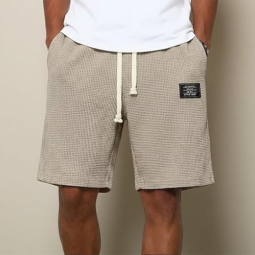 Per uomo Pantaloncini Waffle Shorts Pantaloncini casual Tasca Elastico in vita Puro Semplice Comodità Traspirante Lunghezza al ginocchio Casuale All'aperto Vacanza Vacanza Moda Nero Bianco