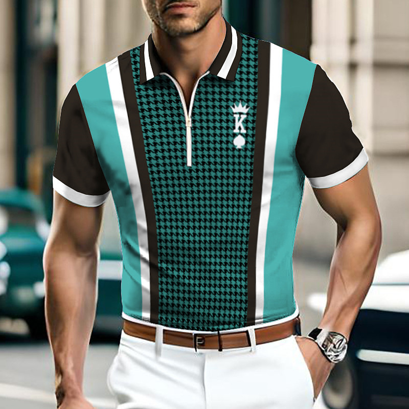 Per uomo Geometrico Polo con zip Maglia da golf Manica Corta Magliette polo Camicie con Colletto Business Casual Abbigliamento da lavoro Abbigliamento Formale Abbigliamento da festa Stampa 3D Polo