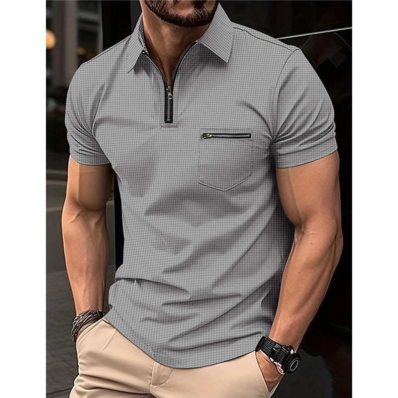 Men's Waffle Polo Shirts Zip Polo Outdoor Sports Lapel Quarter Zip Short Sleeve Fashion Modern Plain Zipper Pocket Summer Regular Fit Black White Navy Blue Beige Gray Waffle Polo Shirts