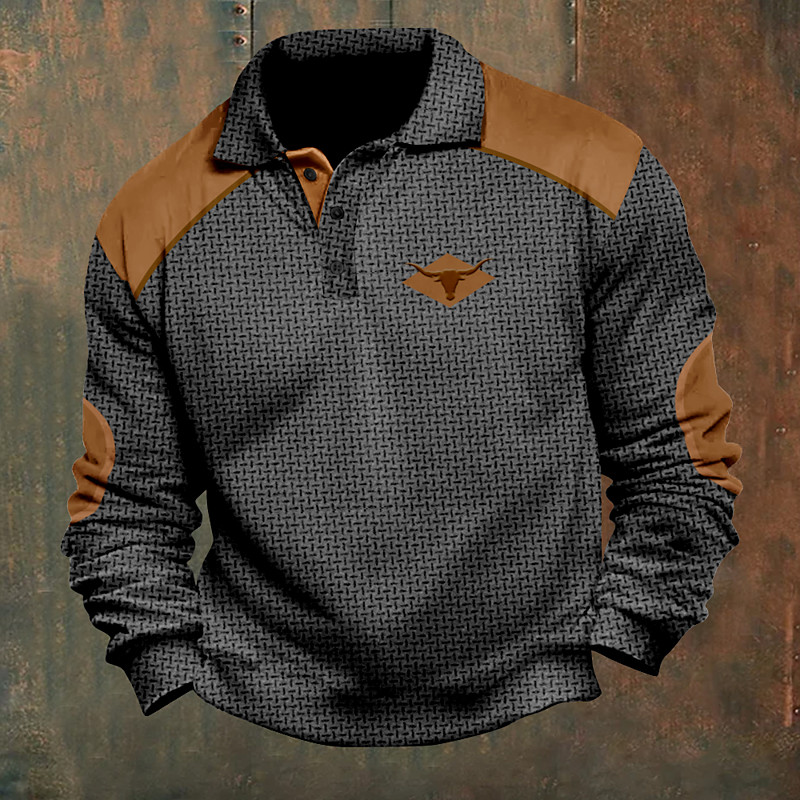 Men's Cow Cowboy Polo Shirts Pullover Long Sleeve Polo Shirts Collar Vintage Casual Outdoor Streetwear 3D Print Buttons Fall Winter Black