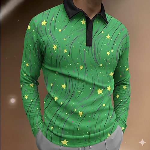 Herren Abstrakt Geometrisch Polo Langarm Polo-Shirts Revers Lässig Athleisure Alltagskleidung 3D-Druck Knöpfe Frühling Herbst Winter Blau Schwarz Grün