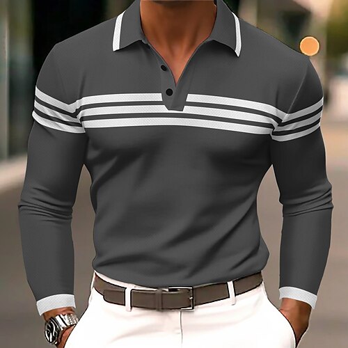Per uomo A righe Polo con zip Maglia da golf Manica Lunga Magliette polo Camicie con Colletto Business Casual Abbigliamento da lavoro Abbigliamento Formale Abbigliamento da festa Stampa 3D Polo con