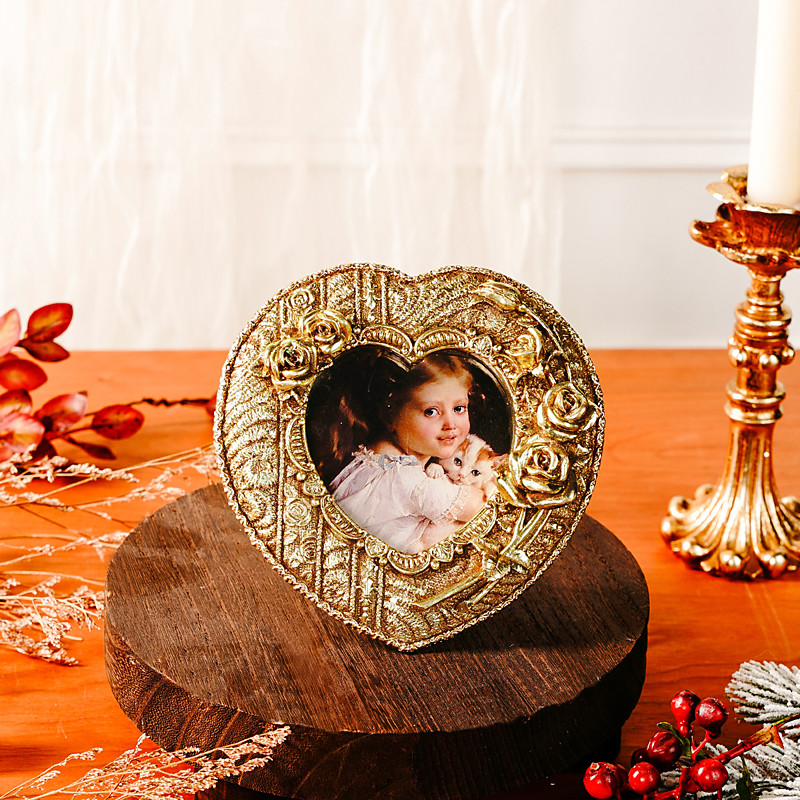 1PC A Classical European Heart-shaped Rose Photo Display Frame A Three-Dimensional Rose Pattern Resin Photo Frame Suitable for Family Photo Display and Photography Decoration Props
