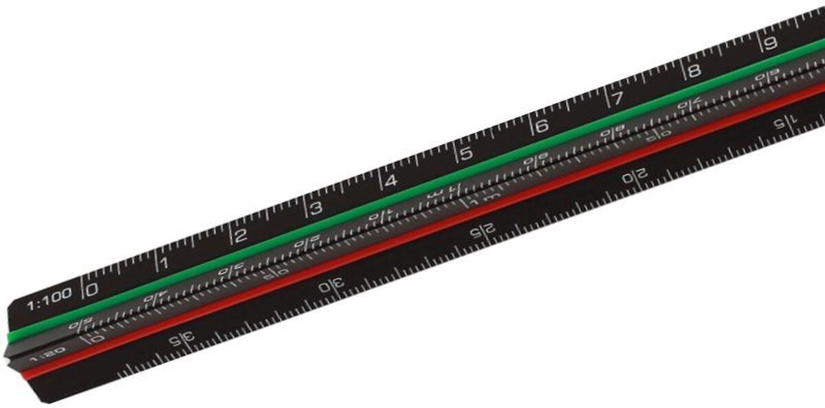 Dreikantmaßstab slim & black 30cm Teilung 1 Architekt Aluminium schwarz