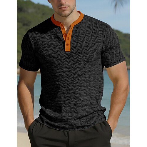 Per uomo Maglietta Maglia Henley Camicia a Maniche Corte Manica Corta Henley Estate Primavera Blocco di colori Moda Streetwear Casual Jacquard Bottoni Quotidiano Vacanza Sport Outdoor Nero Bianco