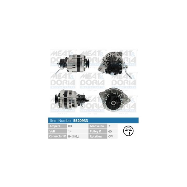 Laturi 14V 80A Meat & doria 5520933 - opel campo, frontera a, frontera a sport, monterey a - OE 01204077, 01204148, 01204170
