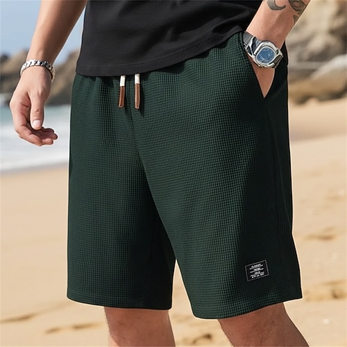 Per uomo Pantaloncini Waffle Pantaloncini Estivi Shorts da Spiaggia Pantaloncini casual Coulisse Elastico in vita Tinta unica Comodità Lunghezza al ginocchio Quotidiano All'aperto Abbigliamento