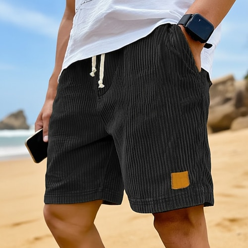 Per uomo Pantaloncini Estivi Shorts da Spiaggia Pantaloncini casual Pantaloncini di velluto a coste Coulisse Elastico in vita Tinta unica Comodità Traspirante Lunghezza al ginocchio Quotidiano