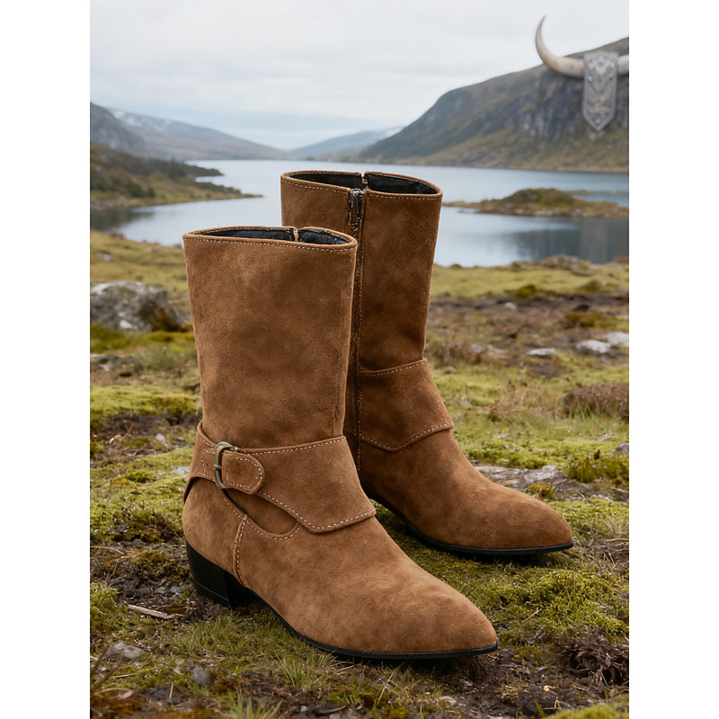 Women's Brown Vintage Medieval-Inspired Suede Ankle Boots with Buckle Detail – Perfect for Casual and Outdoor Wear, Autumn and Winter