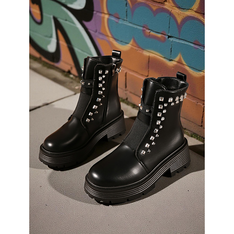 Women's Black Studded Ankle Boots - Chunky Platform Boots with Rocker Style and Bold Metal Stud Detailing, Perfect for Casual, Street Style and Edgy Looks