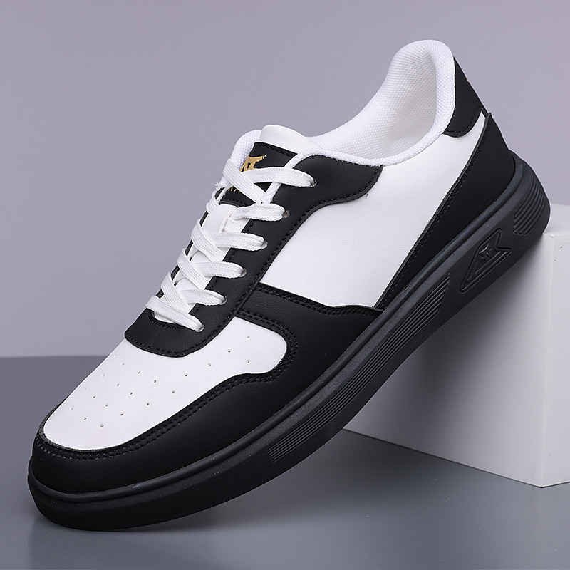 Men's White and Black Sports Sneakers, Breathable Faux Leather, Trendy Color Block Design, Ideal for Active Lifestyles, Perfect for Gym and Sports Activities