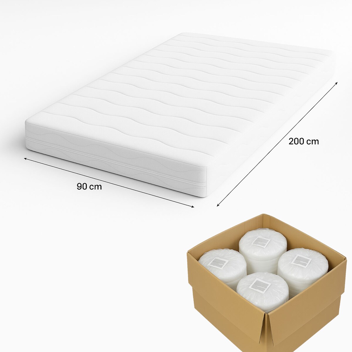 Crownmiller 4 Stück - 7-Zonen-Matratze 90x200cm mittel - 12,5 cm hoch - Bezug bis 60 °C waschbar - 4 Stück microverpackt geliefert