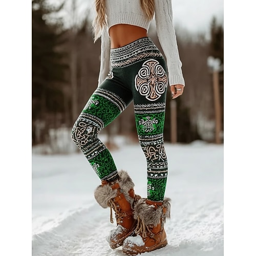 Per donna Leggings Attivo Vacanza Moda Lunghezza intera Vita AltaPantsGiorno di San Patrizio Grafico Trifoglio Stampato Taglio alto Comodità All'aperto Confortevole Elasticizzato Vacanza Formale