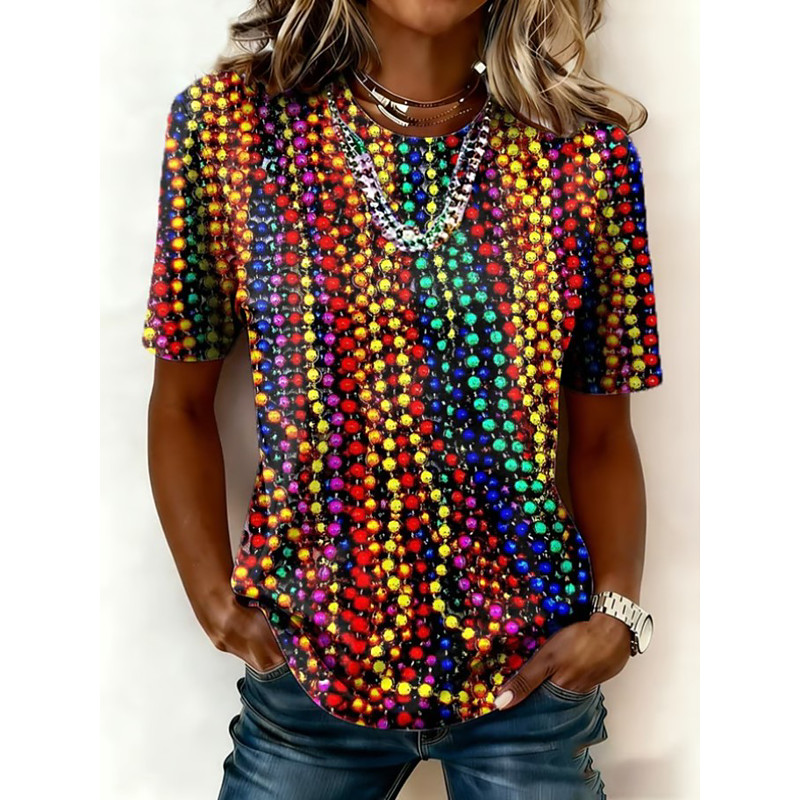 Carnival Mardi Gras Women's T Shirt Graphic Vintage Fashion Stylish Short Sleeve Crew Neck Regular Tops Daily Print Black and Red White Yellow Light Green Purple Summer Spring
